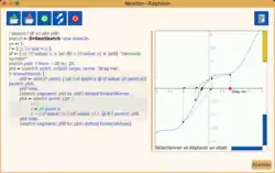 Smalltalk sktech can be used to design interactive sketch illustrating a numerical analysis method. Here the Newton-Raphson algorithm in a 5 steps iteration.