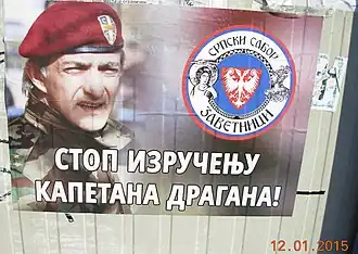 Dragan Vasiljković (Serbian Cyrillic: Драган Васиљковић; born 12 December 1954), nicknamed Captain Dragan (Serbian: Капетан Драган, romanized: Kapetan Dragan) is a convicted war criminal and former commander of a Serb paramilitary unit called the Kninjas during the Yugoslav Wars.[1] In 2005, prosecutors in Croatia accused him of committing war crimes during the wars. A warrant for his arrest was subsequently issued by Interpol.