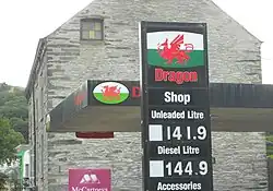Dragon Petroleum is a Welsh fuel company with headquarters at Dyserth in Clwyd.[1] It is a subsidiary of NWF Fuels, itself a trading Division of the NWF Group plc of Nantwich in Cheshire. Dragon Petroleum operates a chain of petrol stations and garages across Wales. Its corporate logo is a stylised Welsh dragon, and in its most recent rebranding this logo has been superimposed upon green and white stripes, so as to resemble (but not precisely reproduce) the Welsh flag. The parent company (NWF) also supplies fuel and associated products across England (from petroleum companies Texaco and Jet), but the Dragon Petroleum brand is restricted exclusively to Wales.[2]