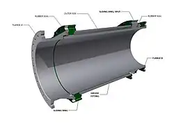 The dredge turning gland has a special particularity. Attached to the lower suction pipe the dredge turning gland allows a radial rotation in both directions of 15°. Due to this particularity the dredge turning gland enable the dredge drag head to follow the sea bottom without losing vacuum The dredge turning gland’s flanges are cast together with the body of the pipes and a rubber lip seal is used for the sealing of the dredge turning glands