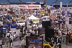 As a trade and consumer show, exhibitors market and sell various aftermarket products and services for cars ranging from mobile audio-video equipment to engine oils and lubricants. More recently, non-automotive companies like Pepsi, SoBe and Solo Mobile have participated in the Driven To Perform events to target the young, affluent and traditionally male demographics. Frequently, spokesmodels are present to attract showgoers and to pose for photographs alongside cars. These models are also known as import models or booth babes and have gained massive popularity among those in the import scene and now beyond into mainstream media and pop culture.[4][5] Increasingly, music (mostly hip-hop, urban and electronica) and dance have become a large part of the Driven To Perform tour. Whether its DJs spinning the latest tracks, up and coming recording artists performing onstage or B-boys and Go-Go dancing, the lights, the sound and the movement are now an unavoidable staple of these multi-faceted events.[6] The Canadian Street Dance Competition held annually within the Vancouver stop of the tour has in recent years grown to become its own standalone show; especially amongst the street dance community.[7] Though conceptually different in theme, execution and scope, DTP shares many similarities and has been compared to the Hot Import Nights series operating in the USA, although much smaller and with fewer attendees.