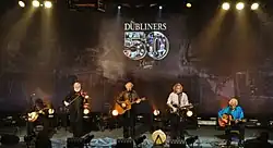 The Dubliners 50th Anniversary Tour was a tour in 2012 by the Dubliners celebrating 50 years. The group was awarded a lifetime achievement award by BBC Radio 2 in February.[1] However, in April, founding member and tenor banjo player Barney McKenna died.[2] Banjo player Gerry O'Connor filled his place until the end of the tour. In November the group released the album 50 Years charting in the Irish Top 10.[3] John Sheahan after 48 years decided he could no longer continue with the band due to the death of Barney McKenna. In December the group played its final concerts at Vicar Street and were joined on stage by Jim McCann. The band met with President Michael Higgins in the presidential palace in Dublin. The group appeared on BBC's Jools Holland Annual Hootenanny on New Year's Eve. With the exception of John Sheahan, the rest of the group continues touring as The Dublin Legends – Spirit of the Dubliners.