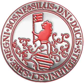 Religious situation in Stjepan's domains was complex,[58] since his subjects belonged to three Christian denominations (Eastern Orthodoxy, Roman Catholicism, and the Bosnian Church).[59] Prominent members of his court were metropolitan David of Mileševa (of the Serbian Patriarchate of Peć), and gost Radin (of the Bosnian Church).[60][61][62] Ethnic composition of Stjepan's wast domains was also complex, encompassing local South Slavic populations, and also romance Vlachs.[63][64]