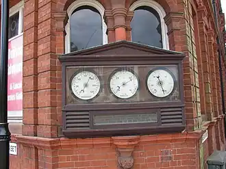 Meteorological instrument display on the corner of the former Dudley Museum. The dedication plaque has since been removed due to vandalism. | |