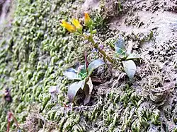 Dudleya cymosa subsp. marcescens is a species of summer-deciduous succulent plant known commonly as the marcescent dudleya or marcescent liveforever. Throughout the months of spring, it is characterized by a bloom of small, bright-yellow flowers with 5 petals, tinged with orange or red. It is a leaf succulent with a basal rosette, with the foliage withering in summer, going completely leafless, a neotenous trait in the genus.[2] This species is endemic to the exposed volcanic rock of the Santa Monica Mountains in California, being found on shady slopes and outcroppings.[3] It differs from its local congeners with its deciduous habit, slender caudex, and narrower leaf shape, although it is superseded in some of these characteristics by Dudleya parva, growing 13 km to the north, which has even narrower leaves and is quicker to lose them.[4] Because of its restricted distribution and small size, it is vulnerable to habitat degradation and disturbance from acts of graffiti and rock climbers.[5] It is listed as threatened by the United States Fish and Wildlife Service.[6]