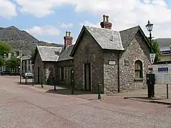 The site and its buildings changed over the years. The initial station was built almost at a right angle to the running lines, with its tracks forming a very short branch adjacent to the north side of Church Street.[9] In 1877 a new station building was erected northeast of the original, aligned with the running lines. Changes were made to tracks in later years,[10] but the station building remains today.