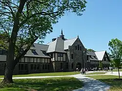 Duke Farms is a center of the Doris Duke Foundation. A decision was made to renovate the estate as "a model of environmental stewardship in the 21st Century and (to) inspire visitors to become informed stewards of the land."[10] While reorganizing the estate, little was accessible to the public. In 2008, DF created some controversy when it permanently closed Duke Gardens, demolishing the indoor display gardens that had been created by Doris Duke.[7] Over the years, the DF created new indoor and outdoor display gardens that are eco-friendly, use native plants, and are wheelchair accessible. In the process of rehabilitation, numerous invasive foreign plants were removed, including Norwegian maple and Asian Ailanthus, and replaced by native species. The property has a number of notable trees, including four of the ten oldest trees of New Jersey,[11] and two champion trees, a Northern Red Oak and an Amur Cork Tree.[12] On May 19, 2012, Duke Farms opened to the public. After a $45-million renovation, Duke Farms now serves as an environmental center that "aims to inspire people to become guardians of the planet, and to be a free, inclusive, accessible resource for helping everyone find their place in nature."[13] Duke Farms' restored habitats now include 30 endangered species and 230 varieties of birds, among which are the great blue heron and the bald eagle.[4][14]