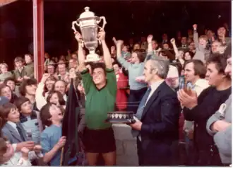In 1979 the Irelanders reached the final of the senior championship for the first time since 1950, where they met Cooley Kickhams at St Brigid's Park. Then the dominant side in Louth football, Cooley were expected to win a 4th consecutive title. Young Irelands, however, outscored them by three points (0–11 to 1–05) to take home the Joe Ward Cup.[15] The team returned to the county final again in 1980 at Ardee but were upset by Roche Emmets on a scoreline of 2–03 to 0–06.[16]
