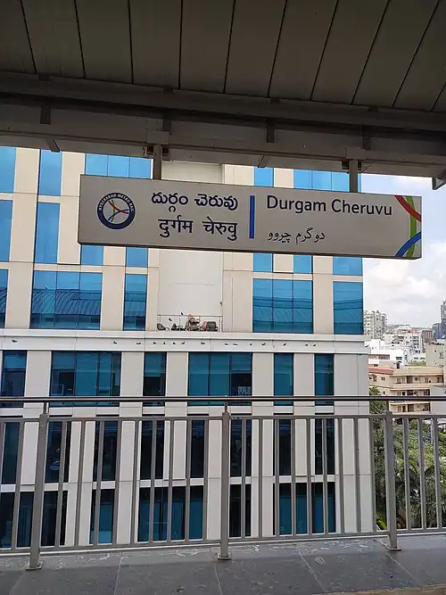 Durgam Cheruvu elevated metro station situated on the Blue Line of Hyderabad Metro.[1]