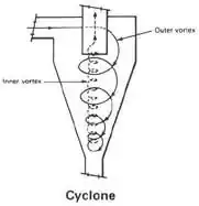 A cyclone separator is an apparatus for the separation, by centrifugal means, of fine particles suspended in air or gas.