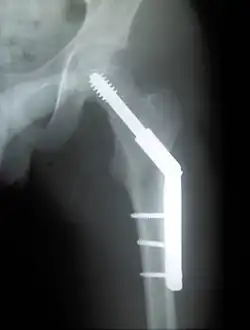 - ^ Sambandam, Senthil Nathan; Chandrasekharan, Jayadev; Mounasamy, Varatharaj; Mauffrey, Cyril (2016-05-01). "Intertrochanteric fractures: a review of fixation methods". European Journal of Orthopaedic Surgery & Traumatology. 26 (4): 339–353. doi:10.1007/s00590-016-1757-z. ISSN 1432-1068. PMID 27028746. S2CID 11320833.