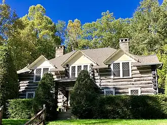 E. M. Backus Lodge, also known as Camp Toxaway, The Cold Mountain Lodge and Canaan Land Christian Retreat , is a historic hunting lodge and national historic district located near Lake Toxaway, Jackson County and Transylvania County, North Carolina. The lodge was built about 1903, and is a 2-story, double-pile house of chestnut logs. The lodge contains eight rooms on two floors, each grouped around a central hall. Also on the property are the contributing log stable (1908, 1922), caretaker's cottage (1908, 1922), guest cottage (c. 1922), barn (c. 1922), and Davis Cottage (c. 1922). The site was the former hunting lodge of Thomas Edison, Henry Ford and Harvey Firestone. The camp became an exclusive girls' camp, Camp Toxaway, in 1922, and a religious and educational retreat in 1955 known as Canaan Land.[2] The estate was bought by George and Nancy Corbett of Florida in 1986 and is still operated by the Corbett family.