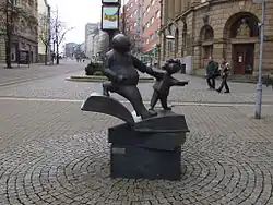 In 1968 his ashes were interred in the central cemetery of his hometown, which took over responsibility for the grave's maintenance in 1988. The Städtische Galerie in Karlsruhe mounted an exhibition of his works in 2001.[1] He is also remembered with the E.O. Plauen prize for an outstanding living caricaturist.[2] Moreover, his "Vater und Sohn" characters have a statue in his hometown,[3] where the figures also appear on storefronts and tram schedules [4]