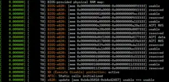 BIOS-e820 is often the first thing reported by a booting Linux kernel, and it can also be seen with the dmesg command.