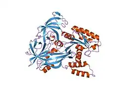 - ^ Pérez JM, Siegal G, Kriek J, Hård K, Dijk J, Canters GW, Möller W (February 1999). "The solution structure of the guanine nucleotide exchange domain of human elongation factor 1beta reveals a striking resemblance to that of EF-Ts from Escherichia coli". Structure. 7 (2): 217–26. doi:10.1016/S0969-2126(99)80027-6. PMID 10368288.