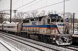 The GMD GP40TC was built by General Motors Diesel (GMD), for GO Transit in Toronto. Eight units were manufactured between 1966 and 1968. They were built on an extended frame to accommodate a head-end power generator.[1]: 55 GO Transit sold the fleet to Amtrak in 1988,[2]: 106 where they were based in Chicago and used on short-haul trains.