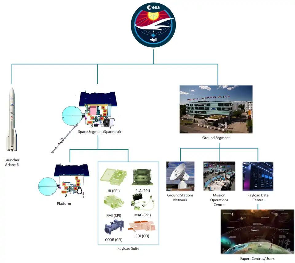 The space segment of the Vigil mission completed the first part of Preliminary Definition (Phase B1)[7] in June 2022. On 21 November 2022, ESA issued a Request for Quotation to Airbus Defence and Space Ltd. for the design, development and verification (Phase B2, C and D) of the Vigil Space Segment.[8] The Phase B2 activities started in April 2024, with the Preliminary Design Review planned for Q1 2026 and the Critical Design Review in Q1 2028.