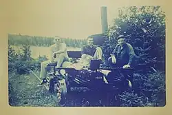 The engine house became a popular snowmobile destination in the 1960s;[9] and fittings like gauges, bells, headlights, and number plates began to disappear from the locomotives before the wooden cab of engine #1 was destroyed when the engine house burned in 1969.[10] The State of Maine (which took possession of the Allagash Waterway region in 1966) decided to destroy the old buildings for safety reasons and to maintain the natural appearance. In 1969, the Maine Forest Service was ordered to relocate its headquarters and destroy its Forest House and associated buildings in the Tramway area; the employee in charge of the work understood that all the buildings had to be burned, which he did, including the locomotive shed and probably the trestle (which burned at this time). The locomotive boiler jackets and asbestos lagging were removed in 1995 but the stripped locomotive shells remain a unique reminder of the industrial revolution in the Maine North Woods.[7]