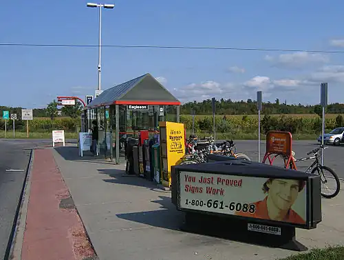Eagleson is a station on Ottawa, Ontario's transitway served by OC Transpo buses. It is located in the western transitway section at Eagleson Road and Highway 417. Eastbound buses enter the station; westbound buses remain on Eagleson and service is from an adjacent bus stop.[1]