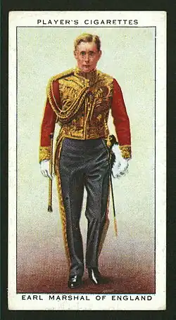 The current earl marshal is Edward Fitzalan-Howard, 18th Duke of Norfolk, who inherited the position in June 2002. There were formerly an Earl Marshal of Ireland and an Earl Marischal of Scotland.