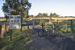 The East Gippsland Rail Trail is a rail trail located in East Gippsland in Victoria, Australia. The trail is a popular cycling route, beginning in Bairnsdale and extending to Orbost, following the route of the former Gippsland railway line. The Gippsland railway line was opened in 1916 to serve the agricultural and timber industry, and required numerous substantial bridges because of the nature of the terrain. Due to the decline in traffic and heavy operating costs, the line was finally closed in August 1987 and the track infrastructure removed in 1994.[1] The shared trail is also available for walkers and recreational horseriding, however motorised vehicles are prohibited.[2]