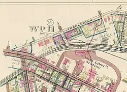 In the late 1840s, the Pennsylvania Railroad sought to connect Philadelphia and Pittsburgh by rail via the state capital, Harrisburg, a route that eventually became known as its Main Line. The section passing through the area known as East Liberty (so named because it was part of the eastern grazing land—or "liberty"—outside Pittsburgh) was completed in 1851, but the entire Main Line connecting the eastern and western principal cities of Pennsylvania would not be completed for another year. By 1855, maps indicate that the railroad had established a station at East Liberty, near where the railroad tracks traversed what would become Penn Avenue.