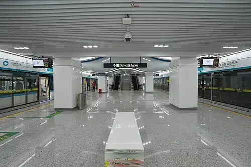 East Nanhu (simplified Chinese: 南湖东站; traditional Chinese: 南湖東站; pinyin: Nánhú Dōng zhàn) is a metro station on Line 5 of the Hangzhou Metro in China.[1][2] It is located in the Yuhang District of Hangzhou. When it opened on January 1, 2025, it replaced Jinxing station as the western terminus of Line 5.