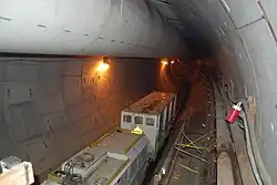 The East Side tunnel was the largest sewer construction project ever undertaken by the City of Portland. A contractor, Kiewit-Bilfinger Berger (KBB), used a tunnel boring machine that was 300 feet (91 m) long and had a cutting head that was 25 feet (7.6 m) in diameter. In addition to the tunnel and the pipe, the project involved building seven access shafts, connecting pipelines, and the Portsmouth Forcemain, which carries sewage from the Swan Island Pump Station to the Columbia Boulevard Wastewater Treatment Plant.[3]