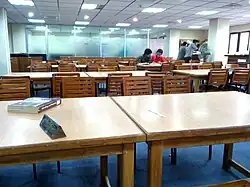 East West University has a library covering about 11000 sq ft. in the new campus with maps and journal area, and has a photocopy corner, database search corner, and newspaper display section. Each day around 2,200 users visit the library. The library contains 22,000 books, a subscription to 135 international and national journals (hardcopy), 3,300 online journals on its database, subscription to 16 national daily newspapers and around 1,500 CD-ROMs and audio cassettes.[9]