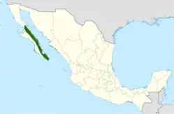 Echinocereus brandegeei is found on the Baja California peninsula and some islands in the Gulf of Mexico all islands from San Marcos to Espíritu Santo. It thrives in very dry areas, xeric scrublands, stony areas, and sandy soils near the beach at elevations from 0 to 300 meters. Plants are found growing around Pachycereus pringlei, Stenocereus thurberi, Opuntia tapona, Stenocereus eruca, Cylindropuntia cholla, Ferocactus peninsulae, Ferocactus emoryi subsp. rectispinus, Stenocereus gummosus, Stenocereus thurberi, Jatropha cuneata, Euphorbia lomelii, Bursera microphylla and Fouquieria diguetii. In some part of its range it grows among Echinocereus maritimus and Opuntia invicta.[4]