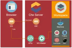 Eclipse Che is an open-source, Java-based developer workspace server and online IDE (integrated development environment). It includes a multi-user remote development platform. The workspace server comes with a flexible RESTful webservice. It also contains a SDK for creating plug-ins for languages, frameworks or tools.[4] Eclipse Che is an Eclipse Cloud Development (ECD) top-level project, allowing contributions from the user community.[5]
