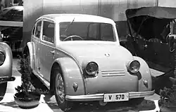 In 1932 ASAP-Škoda in Mladá Boleslav Bohemia Czechoslovakia, produced a type Škoda 932 prototype of a streamlined 4-seater two-door car with a rear air-cooled flat-four engine designed by Karel Hrdlička and Vsevold Korolkov. This car's bodywork closely resembled the small car designs yet to come.[43]
