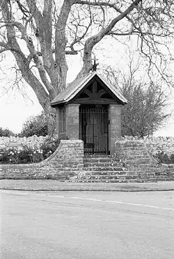 The Church of England parish church of Saint Mary Magdalene is just off the High Street. It dates from the 13th century.[5] Graves of the Sotheby family of Ecton Hall and the Franklin family are in the churchyard. The stained glass in the east window of St Mary Magdalene's Church is dedicated to the memory of Major General Frederick Edward Sotheby of Ecton Hall. It depicts The offering of King David at the Cave of Adullam, and was executed in 1912 by Percy Bacon & Brothers.[6]