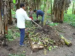 The Ecuador composting method is a traditional small-scale composting technique commonly practiced in the lowland regions of Ecuador and Peru. This method involves constructing a compost pile on a trunk or banana stalks with a central pole inserted in the middle. Organic matter is layered on the base and covered with soil or other organic matter. After the pile reaches a certain height, it is watered and covered with large leaves. Once the compost settles, the central pole is removed to facilitate aeration. This method is typically used by indigenous communities and serves as an effective way to recycle organic waste in these regions.