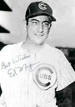 Edwin David Mayer (November 30, 1931 – December 29, 2015) was an American professional baseball pitcher. A 6 ft 2 in (1.88 m) left-hander, Mayer was Jewish.[1] He played parts of two seasons in Major League Baseball for the Chicago Cubs in 1957 and 1958. He also pitched in the minor leagues from 1952 to 1959.