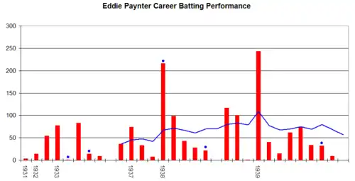 Edward Paynter (5 November 1901 – 5 February 1979) was an English cricketer: an attacking batsman and excellent fielder. Among batsmen with at least ten Test dismissals, his batting average of 59.23 is the eighth highest ever;[1] among batsmen with at least 25 Test dismissals, his average is the fifth highest ever, second only to Herbert Sutcliffe amongst Englishmen.[2] Against Australia alone Paynter averaged an extraordinary 84.42.