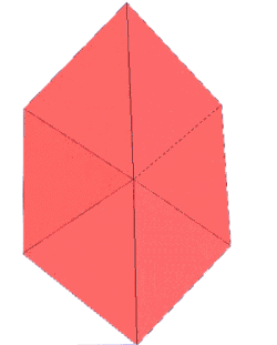 If the sets of three coplanar triangles are considered a single face (called a triamond[1]), it has 10 vertices, 22 edges, and 14 faces, 12 triangles and 2 triamonds.