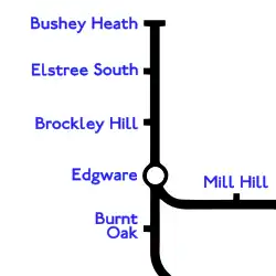 | Terminus | Northern line Edgware branch