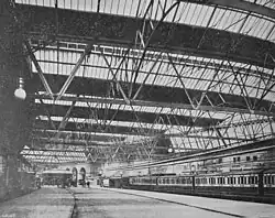 By 1870, with increasing traffic, it was decided to build a new station slightly further north, still on Lothian Road but nearer Princes Street.[2] Renamed Princes Street Station, it was opened in May 1870. It was built of timber with a pitched, slated roof. In June 1890, the building, which had been called the "wooden shanty", suffered a major blaze.