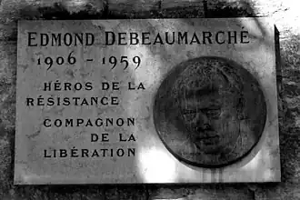 Edmond Debeaumarché (15 December 1906 – 28 March 1959) was a French postal worker who joined the French Resistance during World War II. For his service Debeaumarché was highly decorated. In 1960 Debeaumarché received the posthumous distinction of being depicted on a postage stamp in the series Heroes of the Resistance.[1]