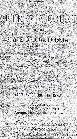 On January 29, 1890, in the Visalia, California court case Wysinger v. Crookshank, 82 Cal 588, 720, (1890), the California Supreme Court ruled that public school districts in California may not establish separate schools for children of African descent.