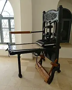 Exhibits include historical and religious artifacts, many brought to Jerusalem by pilgrims, including hand-woven rugs, a collection of Armenian coins, huge copper cauldrons crafted by Armenian smiths, colorful tiles from the world-famous Kütahya district, and a map of the ancient world printed in Armenian. There is also a replica of Gutenberg's original printing press, the first to be established in Jerusalem in 1833.