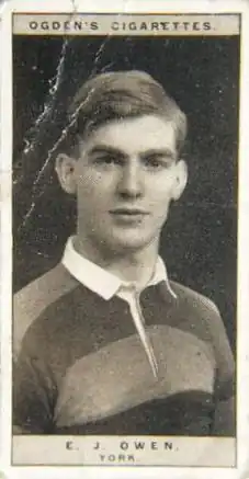 Edward James Owen (December 1903[1] – death unknown) was a Welsh rugby union and professional rugby league footballer who played in the 1920s. He played club level rugby union (RU) for Crumlin RFC, and club level rugby league (RL) for Leeds and York, as a fullback.