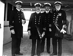 Smith even became known as the "Millionaires' Captain".[15] From 1904 on, Smith commanded the White Star Line's newest ships on their maiden voyages. In 1904, he was given command of what was then the largest ship in the world, the Baltic. Her maiden voyage from Liverpool to New York, sailing 29 June 1904, went without incident. After three years with Baltic, Smith was given his second new "big ship", the Adriatic. Once again, the maiden voyage went without incident. During his command of Adriatic, Smith received the long service Decoration for Officers of the Royal Naval Reserve (RD).[16]
