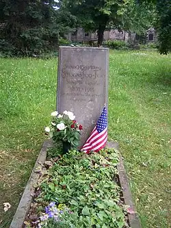 Due to the good treatment and recognition of his family, he expressed his wish to be buried in Dresden. While touring in Essen he died, his body was transferred as back to Dresden and was buried at the New Catholic Cemetery. His name "Two-Two" meant in the Lakota language means "One of two". The inscription on the grave stone reads in the Lakota language: "To Paradise angel like you escort".
