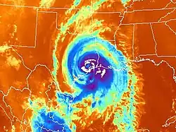 ![]() Satellite image of Hurricane Ike on September 12 as it approached Texas | |