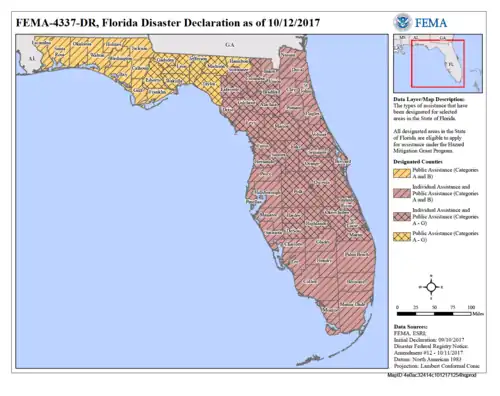 - ^ "Florida Hurricane Irma (DR-4337)". Federal Emergency Management Agency. December 2017. Archived from the original on December 5, 2017. Retrieved December 8, 2017.