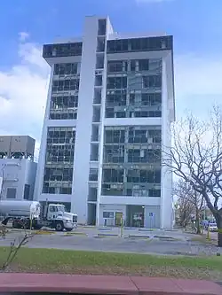 In Pompano Beach, a total of 40 homes became uninhabitable, including 20 mobile homes, 11 commercial buildings, 5 apartment and condo units, and 4 single-family dwellings.[81] One of the worst damaged areas was downtown Fort Lauderdale, where several highrise office buildings suffered extensive damage, including One Financial Plaza, AutoNation Tower, Broward Financial Center, the Broward County Administration Building, the 14-floor Broward County School Board building, and the Broward County Courthouse.[82]