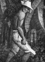 In 1941, Andrade moved to Manabí with the sole purpose of painting, and by the end of this year he had completed a collection of oil paintings and some portraits utilizing his already mastered “pen and ink” technique. He presented his first exhibition in Portoviejo, Manabí at Casa de la Cultura and soon after he returned to Quito to work along with his friend Dr. Humberto Albornoz at the “Plan Regulador” in the development of the first formal city planning project of the city of Quito.[3]