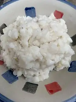 Egbo is a Yoruba dish popular especially among the people from Ibadan. The food is made from dry corn which is cooked until soft.[1][2] Also known as corn porridge, egbo is similar to oatmeal. When eaten with sauce, beans and vegetables it is known as ororo robo.[3]